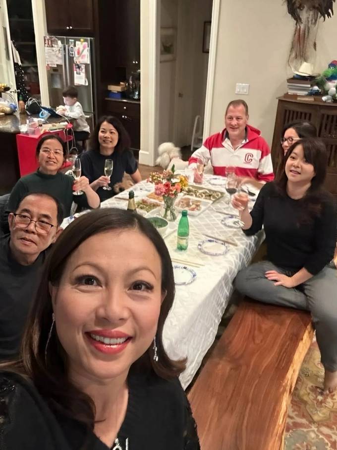 Ngô Mỹ Uyên hạnh phúc khi gia đình sum vầy.